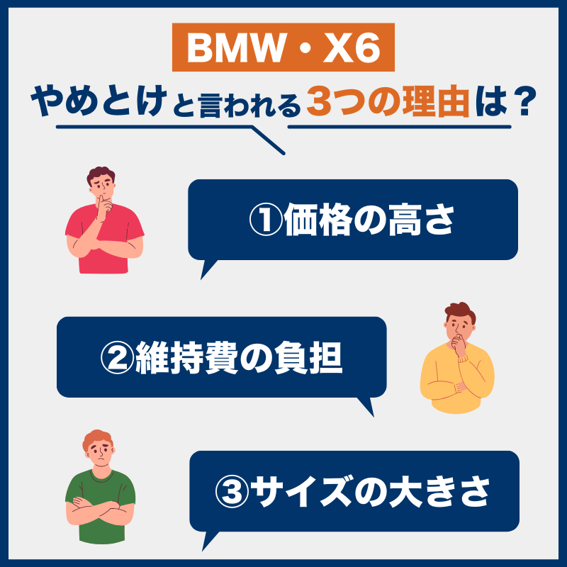 ここでは、BMW・X6が「やめとけ」と言われる代表的な理由を3つに絞って解説します。