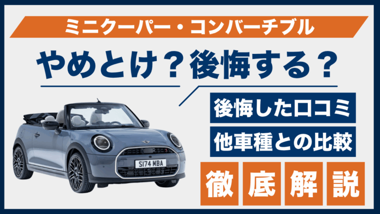 「ミニクーパー・コンバーチブルって街乗りでも使いやすいの?」 「価格に見合うだけの価値や満足感はある?」 「オープンカーゆえの維持費や不便さで後悔しないか不安…」 おしゃれで個性的なオープンカーとして人気のミニクーパー・コンバーチブル。 デザインや開放感に魅了される人が多い一方で、「実用性が低い」「価格が高い割に不便」といったネガティブな声も少なくありません。 特に日常使いや家族利用を想定している […]