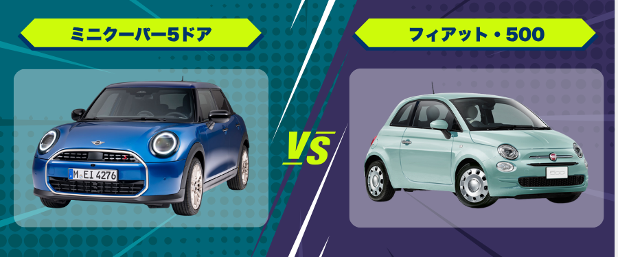 ミニクーパー5ドア vs フィアット 500を比較|選ぶならどっち?