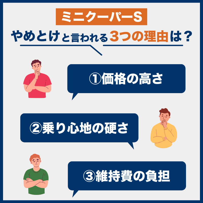 ここでは、ミニクーパーSを購入して後悔する主な3つの理由について、具体的に解説します。