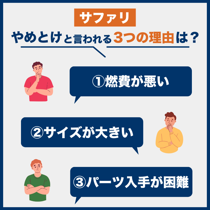 サファリがやめとけと言われる理由は「燃費が悪い」「サイズが大きすぎる」「部品が手に入りにくい」の3つ