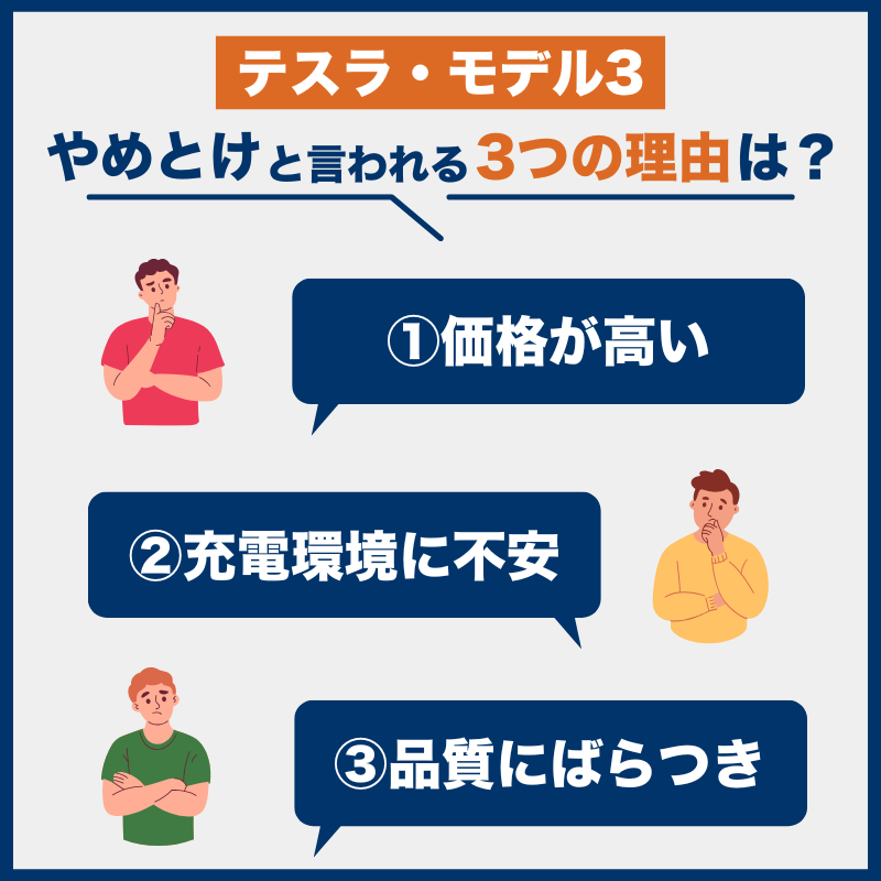 テスラ・モデル3がやめとけと言われる理由は「価格が高い」「充電環境に不安」「品質にばらつき」の3つ